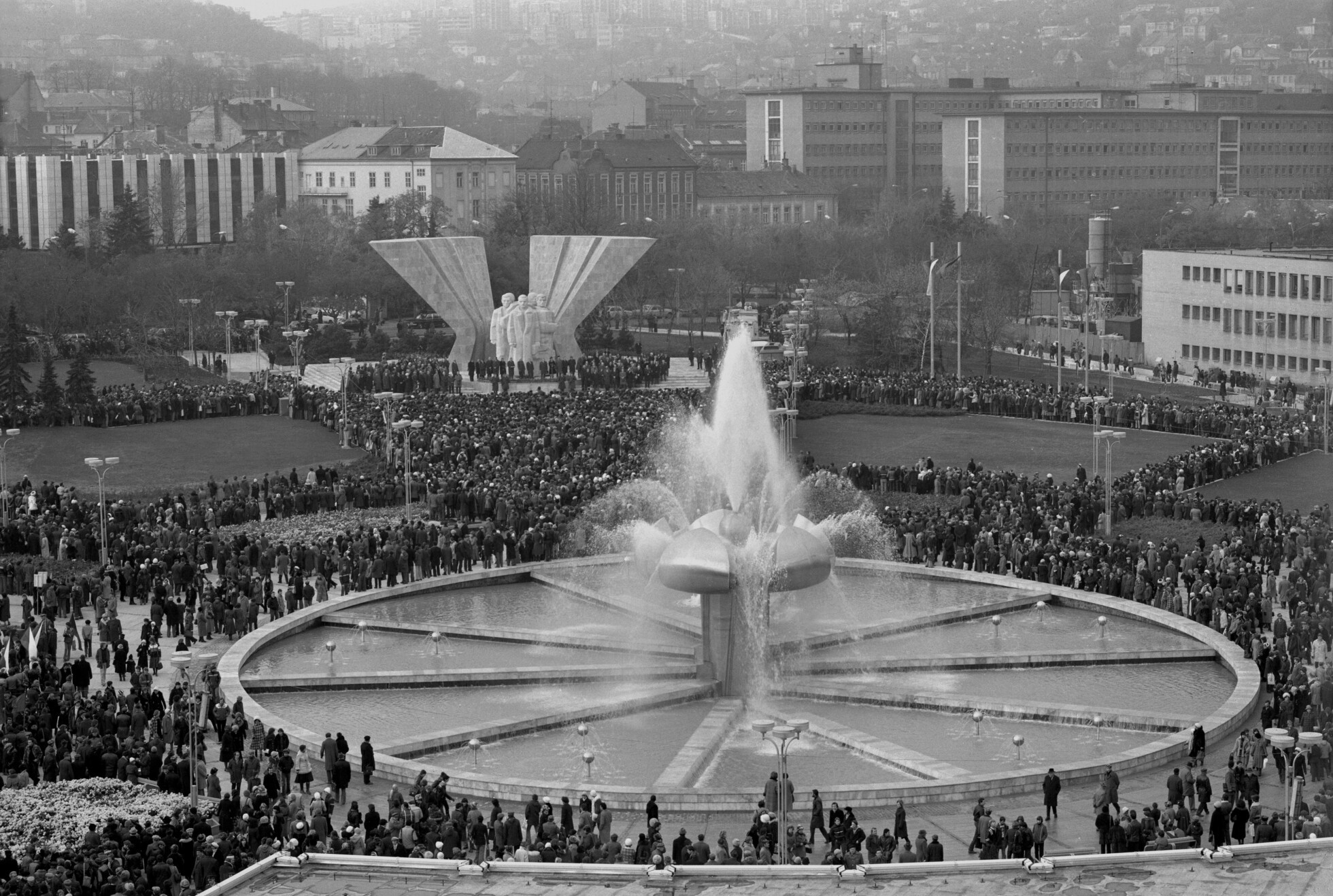 Rozvíjajúci sa 12-tonový lipový kvet v strede fontány má symbolizovať priateľstvo a mier medzi národmi – išlo o typickú dobovú frázu. O internacionálnej spolupráci sa v čase neslobody písalo a hovorilo často, no realita bola taká, že len niekoľko kilometrov od tejto fontány za nepovolený pokus o prechod do Rakúska hrozilo, že vás na hranici zastrelia.