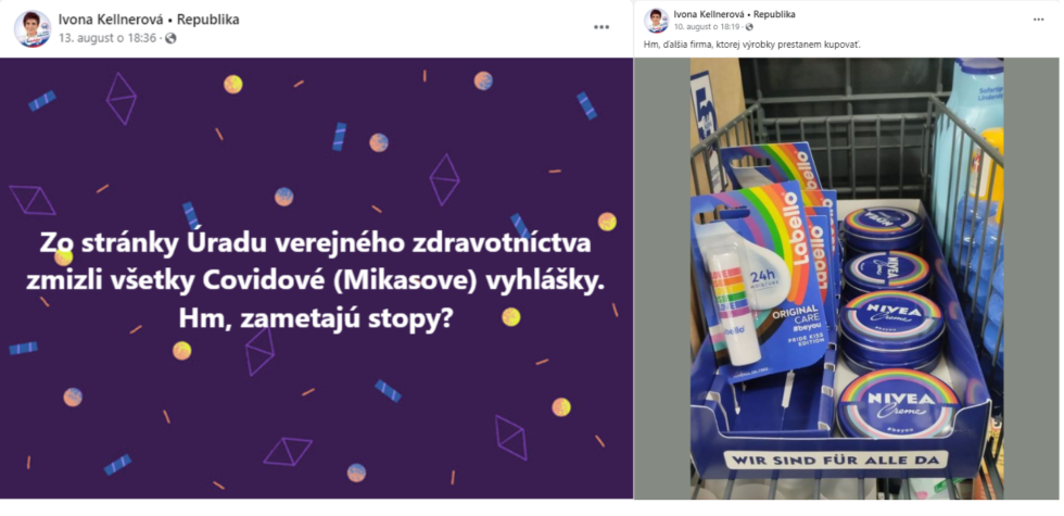 Za Republiku kandiduje Ivona Kellnerová, učiteľka angličtiny zo Spišskej Novej Vsi, ktorá takisto rozhovor odmietla. Učiteľka zdieľa najrôznejšie konšpirácie. „Zo stránky Úradu verejného zdravotníctva zmizli všetky covidové (Mikasove) vyhlášky. Hm, zametajú stopy?“ zamýšľa sa pani učiteľka na Facebooku. Zdieľa aj svoje rozhodnutie prestať kupovať výrobky od značiek Nivea či Labello, pretože majú na svojich obaloch dúhu.