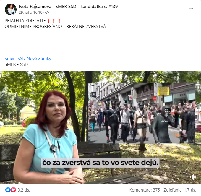 Iveta Rajčániová je riaditeľka školy v Nových Zámkoch, rada sa svojim žiakom venuje a na Facebooku školy ju vidno na mnohých školských aktivitách. Na svojom politickom profile však so zhrozením informuje o tom, že prezidentka Zuzana Čaputová pozbavila funkcie šéfa SIS Michala Aláča, alebo sa teší z prepustenia Tibora Gašpara.