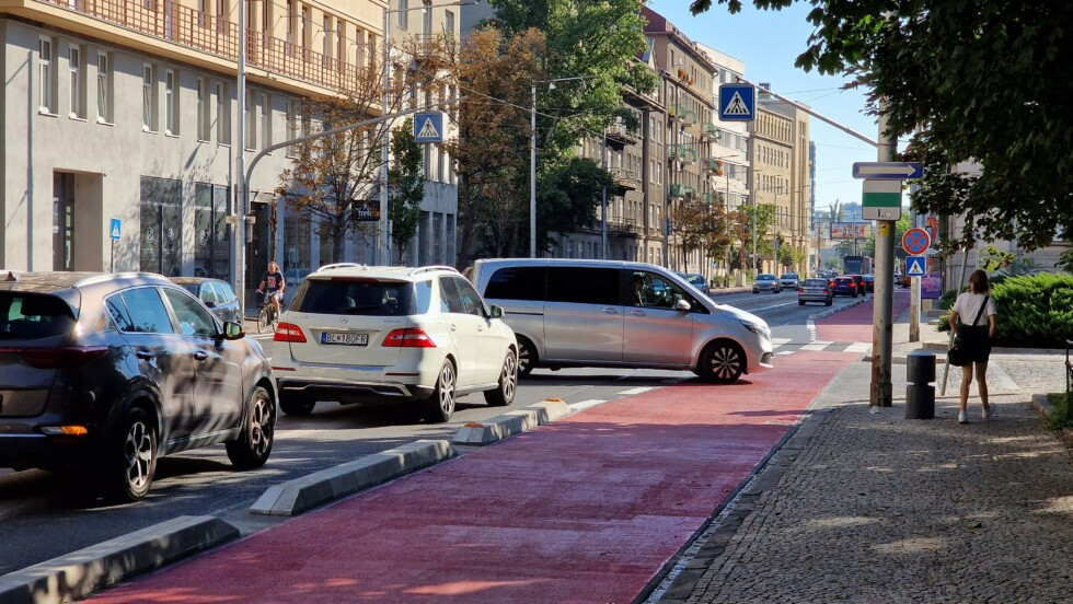 Ak stojíte v zápche na nábreží, zvolili ste buď zlý dopravný prostriedok, alebo zlú trasu, znie komentár cyklistky na sociálnej sieti, ktorý sprevádza fotografiu z novej cyklotrasy na Vajanského nábreží. Červený pruh oddelený nízkymi betónovými obrubníkmi lemuje kolóna stojacich áut.
