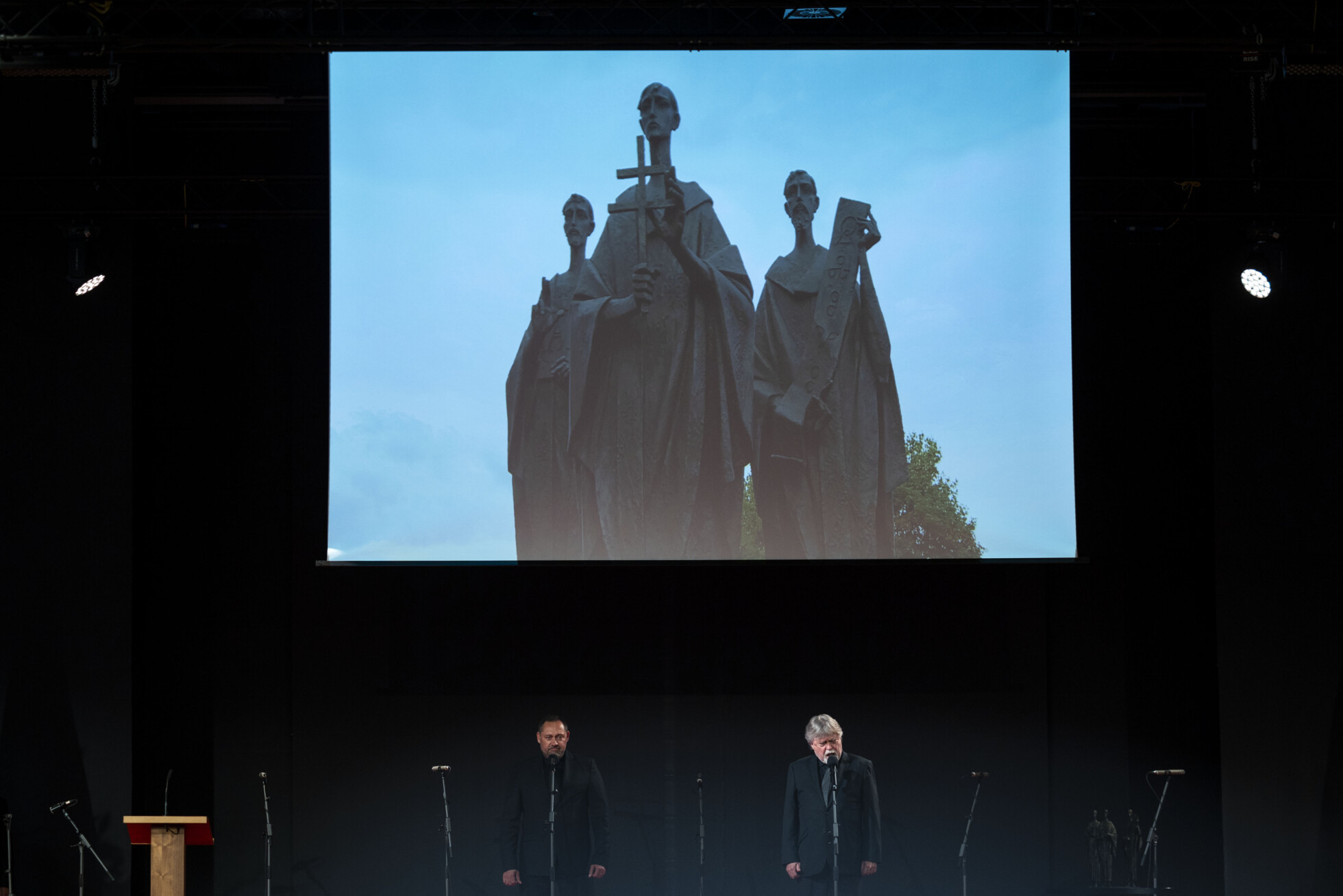 Desiatky zvedavcov vo štvrtok popoludní postávajú pri súsoší sv. Cyrila, Metoda a Gorazda na Bratislavskom hrade. Niektorí tam čakajú už hodinu, ani sa nenazdajú a bude po všetkom. Necelú minútu trval ceremoniál priamo pri súsoší solúnskych bratov a ich žiaka.