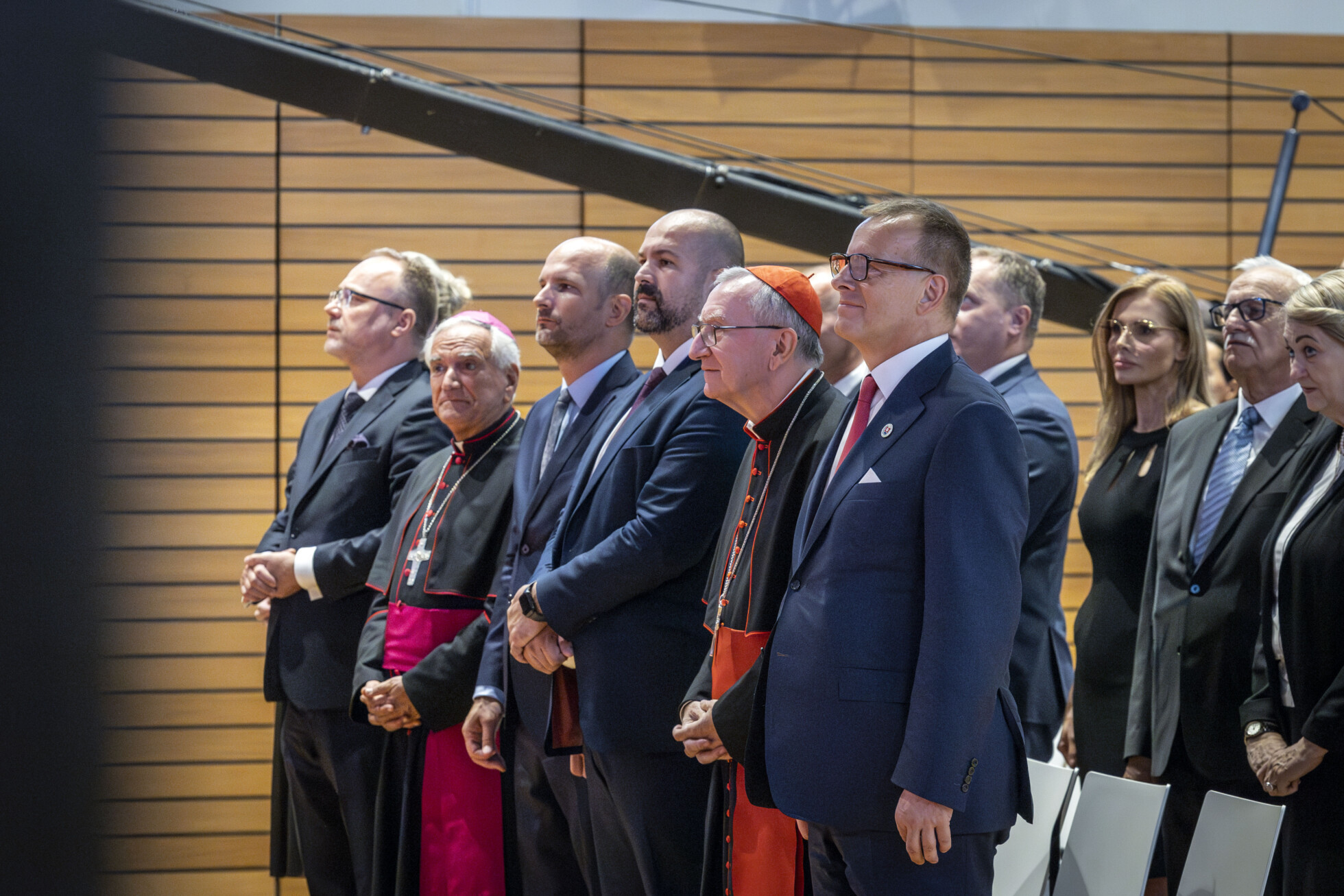 Vatikánsky predstaviteľ Parolin v krátkom príhovore v Zimnej jazdiarni rozprával, že sochy v areáli Hradu „žiaria ako symbol historickej kontinuity a jednoty slovenského národa“.