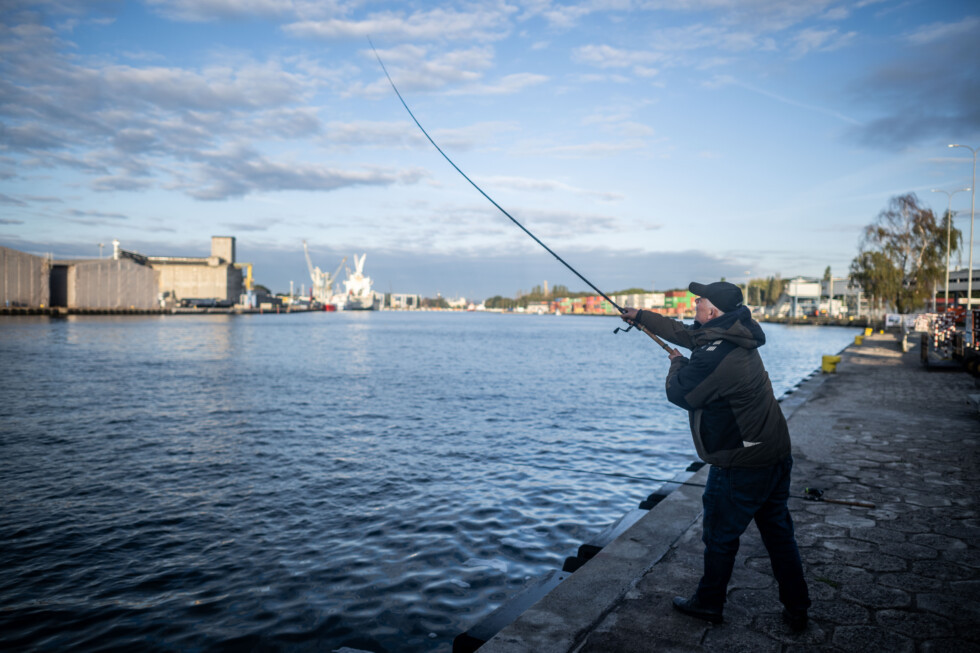 Na druhej strane výbežku s výhľadom na prístav chytá ryby pri neotvorenom stánku s občerstvením pán Leszek. „Som dôchodca, tak čo budem robiť doma. Teraz som tu sám, ale na jar, keď sú slede, je tu plno,“ hovorí bývalý šofér z povolania.