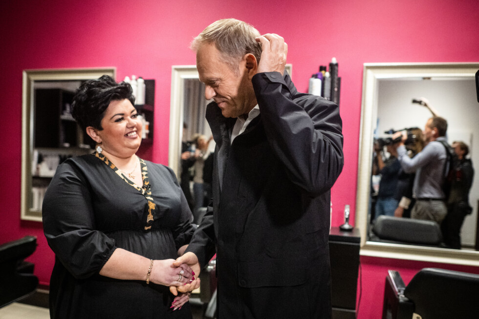 Vo vnútri ho už čaká majiteľka salónu krásy Marzenka Marusiak. Je trochu nervózna, dvojnásobný poľský premiér a bývalý predseda Európskej rady k nej nechodí každý deň.
