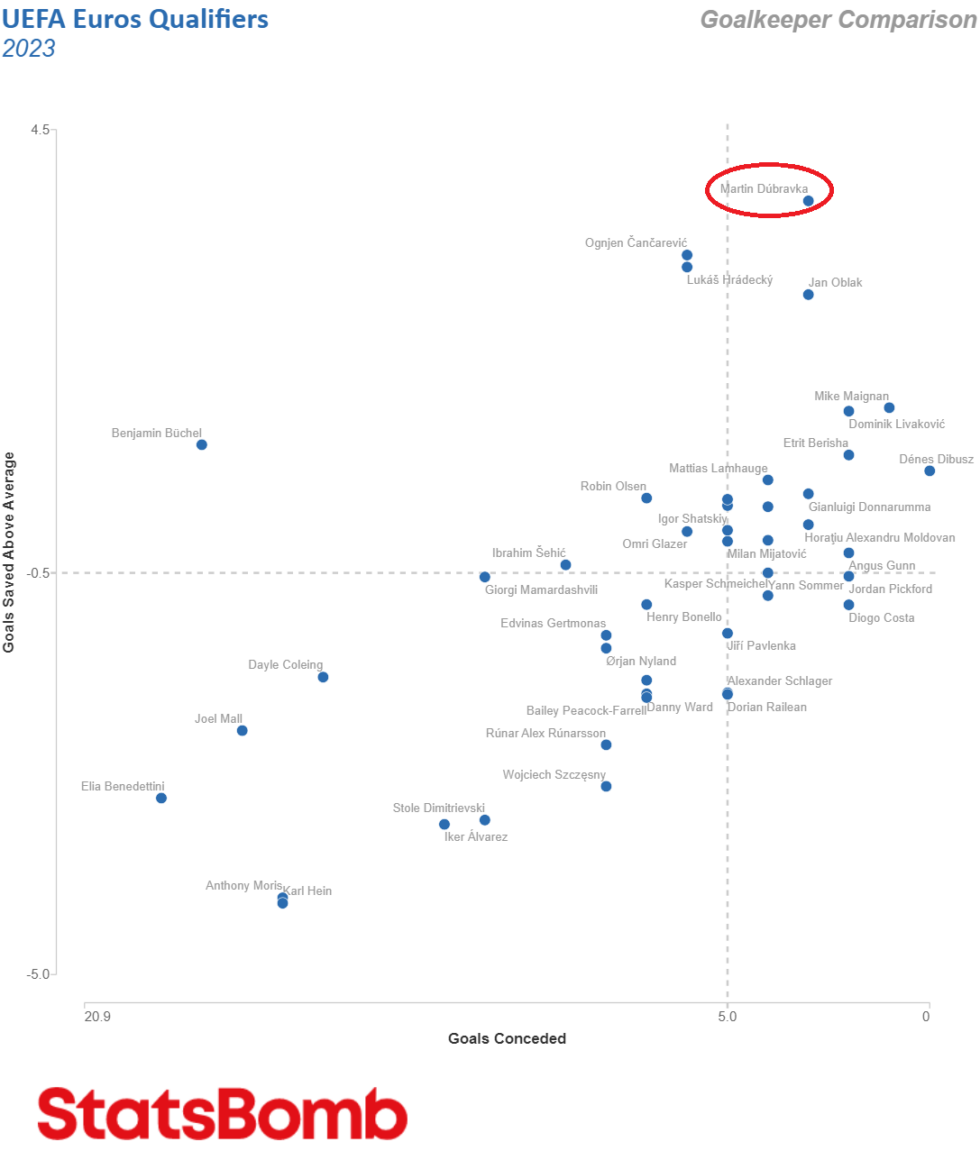 „Keď si pozrieme dáta z celej kvalifikácie, Dúbravka je v tejto štatistike najlepší zo všetkých európskych brankárov. Len štyria z nich dokázali chytiť viac ako dva góly navyše; Dúbravka ich pritom chytil až 3,68. Za ním sú Armén Ognjen Čančarevič, Fín Lukáš Hradecký a Slovinec Jan Oblak,“ hovorí Kabát.