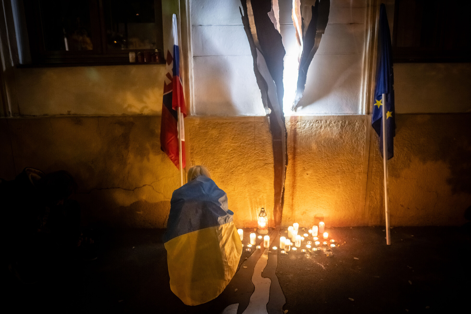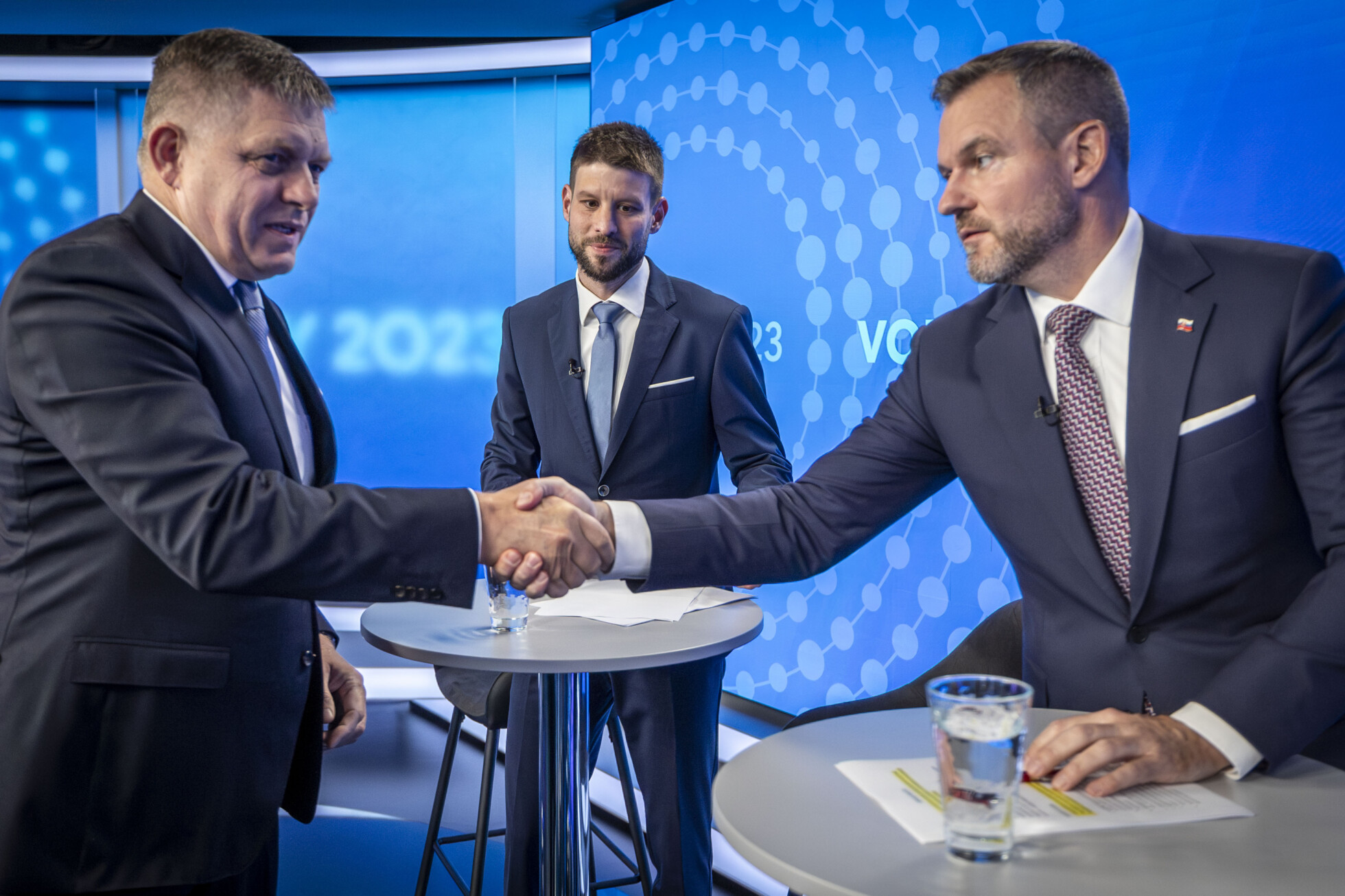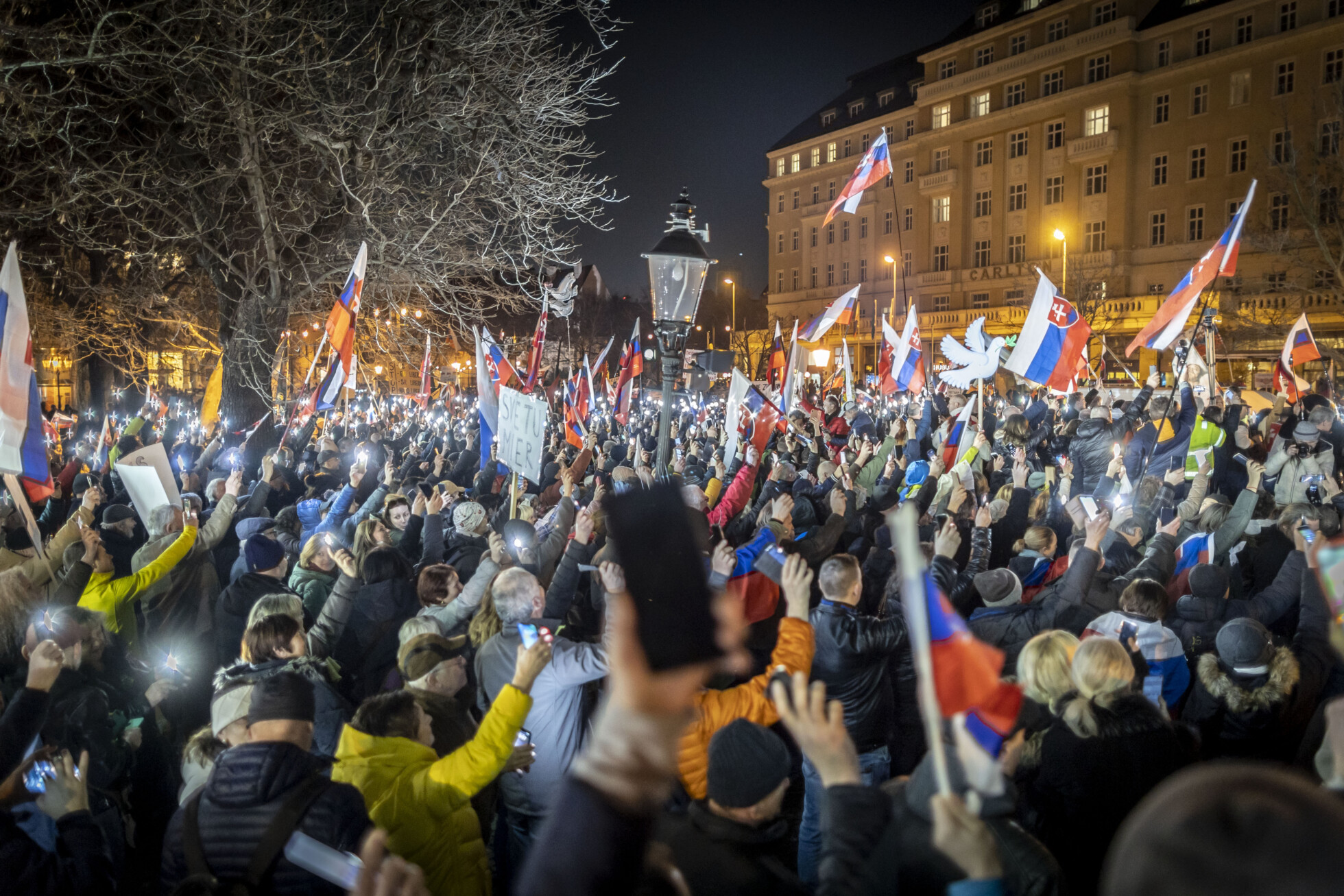 16. 2. 2023, Piešťany. Papierová holubica na „Slovenskom pochode za mier“; podobné sa konali v rôznych mestách. Zúčastnili sa na nich prevažne ľudia, ktorí v Rusku nevidia agresora. Foto N – Tomáš Benedikovič23. 2. 2023, Donbas, Ukrajina. Vojak Ruslan sa učí lietať s dronom. Foto N – Vladimír Šimíček25. 2. 2023, Donbas, Ukrajina. Foto N – Vladimír Šimíček27. 2. 2023, Charkiv, Ukrajina. Telá ruských vojakov v charkivskej márnici. Foto N – Vladimír Šimíček3. 3. 2023, Bratislava. Účastník „pochodu za mier“ pred Prezidentským palácom. Foto N – Tomáš Benedikovič3. 3. 2023, Bratislava. Vyvrcholenie „pochodu za mier“. Namiesto od Rusov žiadali mier od americkej ambasády. Foto N – Tomáš Benedikovič8. 3. 2023, Nitra. Oslavy MDŽ strany Smer v nitrianskom PKO. Foto N – Tomáš Benedikovič22. 3. 2023, Voderady. Herec Milan Ondrík ako Mikuláš Černák počas nakrúcania filmu Miki. Foto N – Tomáš Benedikovič21. 4. 2023, Bratislava. Tlačová beseda strany Demokrati v ich sídle na Miletičovej ulici. Foto N – Tomáš Benedikovič27. 4. 2023, Kramatorsk, Ukrajina. Emotívne odovzdávanie sanitiek, na ktoré sa v zbierke, ktorú zorganizoval spoluautor tohto článku Vlado Šimíček, vyzbieralo 1922 ľudí. Priviezli sme sedem sanitiek a dva džípy. Foto N – Tomáš Benedikovič27. 4. 2023, Charkiv, Ukrajina. Časť cintorína, kde pochovávajú vojakov. Foto N – Tomáš Benedikovič15. 5. 2023, Bratislava. Bývalý premiér Eduard Heger víta novovymenovaného premiéra Ľudovíta Ódora na úrade vlády. Foto N – Tomáš Benedikovič30. 5. 2023, Banská Štiavnica. Socha anjela v depozite Galérie J. Kollára. Počas požiaru tím galérie s pomocou dobrovoľníkov evakuoval celú galériu. Foto N – Tomáš Benedikovič8. 6. 2023, Iža. Labute, ktoré obsadili makové pole medzi obcami Iža a Patince v okrese Komárno, sa stali závislými od maku. Ten je pre ich tráviaci systém škodlivý, zahynuli tam desiatky vtákov. Foto N – Tomáš Benedikovič10. 6. 2023, Púchov. Pracovný snem strany Hlas. Foto N – Tomáš Benedikovič14. 6. 2023, Trenčín. Koncert skupiny Rammstein na trenčianskom letisku. Foto N – Tomáš Benedikovič21. 6. 2023, Bratislava. Dom Albrechtovcov v roku 2010 a dnes. Roky ho rekonštruujú členovia združenia Albrecht forum, aby sa opäť stal kultúrnym centrom ako v časoch, keď tu žila rodina Albrechtovcov. Foto N – Tomáš Benedikovič7. 7. 2023, Bratislava. Zuzana Čaputová a Volodymyr Zelenskyj na nádvorí Prezidentského paláca. Foto N – Tomáš Benedikovič8. 7. 2023, Trenčín. Koncert Bez ladu a skladu na festivale Pohoda. Foto N – Vladimír Šimíček21. 7. 2023, Ukrajina. Michal Kaščák na ceste so sanitkou do Kramatorska. Šoféruje jedno z áut, na ktoré sa vyzbierali návštevníčky a návštevníci Pohody 2023. Foto N – Vladimír Šimíček31. 7. 2023, Rožňava. Jeden z predvolebných mítingov Hlasu pod názvom Pelleton. Foto N – Vladimír Šimíček15. 8. 2023, Rimavská Sobota. Robert Fico počas prvého predvolebného mítingu strany Smer. Foto N – Vladimír Šimíček17. 8. 2023, Haluzice. Juraj Gábor a jeho dielo Zrkadlenie v Kostole Všetkých svätých. Foto N – Vladimír Šimíček19. 8. 2023, Bratislava. Historik Ivan Kamenec sa postavil do cesty Milanovi Uhríkovi zo strany Republika. Ľudia z Iniciatívy Zabudnuté Slovensko zorganizovali tichý protest, keďže RTVS pozvala do debaty bez oponentov dvoch extrémistov – Milana Uhríka a Mareka Kotlebu z ĽSNS. Foto N – Vladimír Šimíček29. 8. 2023, Zvolen. Tibor Gašpar na predlaktí svojho syna Pavla Gašpara. Obaja sú medzi ľuďmi počas osláv SNP, ktoré zorganizoval Smer. Foto N – Tomáš Benedikovič31. 8. 2023, Poprad. Lôžko z tisového dreva, na ktorom ležal mŕtvy. Podtatranské múzeum otvorilo dlho očakávanú expozíciu. Vystavuje v nej nález európskeho významu: artefakty z dvojkomorovej hrobky starej vyše 1600 rokov. Foto N – Tomáš Benedikovič1. 9. 2023, Benátky, Taliansko. Tvorcovia filmu Svetloplachosť na festivale v Benátkach, kde mal film premiéru. Foto N – Vladimír Šimíček5. 9.2023, Bratislava. Kolektívna výstava Rozptyl v bývalom azylovom dome na Karpatskej ulici. Foto N – Tomáš Benedikovič5. 9. 2023, Bratislava. Bilbordy na Šancovej ulici. Foto N – Tomáš Benedikovič13. 9. 2023, Telgárt. Zhorenisko v rómskej kolónii, kde v júli vypukol požiar, pri ktorom zomrela jedna osoba. Ďalších asi 105 ľudí, z nich vyše 60 detí, prišlo o strechu nad hlavou. Foto N – Tomáš Benedikovič14. 9. 2023, Bratislava. Biskupi pri novom súsoší sv. Cyrila, Metoda a Gorazda na Bratislavskom hrade. Foto N – Tomáš Benedikovič22. 9. 2023, Bratislava. Posledný predvolebný míting PS na Hlavnom námestí. Foto N – Vladimír Šimíček26. 9. 2023, Bratislava. Robert Fico, Michal Šimečka a Peter Pellegrini pred televíznou debatou v štúdiu TA3. Foto N – Tomáš Benedikovič1. 10. 2023, Bratislava. Robert Fico a jeho spolustraníci na balkóne centrály Smeru spoločne spievajú uprostred noci pieseň Na Kráľovej holi. Foto N – Tomáš Benedikovič1. 10. 2023, Bratislava. Pamätník Jána Kuciaka a Martiny Kušnírovej deň po parlamentných voľbách. Foto N – Vladimír Šimíček3. 10. 2023, Bratislava. Peter Pellegrini v rozhovore s novinármi po stretnutí s prezidentkou Zuzanou Čaputovou. Foto N – Tomáš Benedikovič10. 10. 2023, Gdansk, Poľsko. Donald Tusk na predvolebnom mítingu Občianskej koalície. Foto N – Vladimír Šimíček11. 10. 2023, Bratislava. Lídri budúcej koalície po podpise „memoranda o porozumení“. Foto N – Vladimír Šimíček11. 10. 2023, Párnica. Ovečky na Orave. Foto N – Tomáš Benedikovič12. 10. 2023, Bratislava. Ľudia zapaľujú sviečky na Zámockej, aby si rok po vražde v Teplárni pripomenuli Juraja a Matúša a vyjadrili podporu ľuďom z LGBT