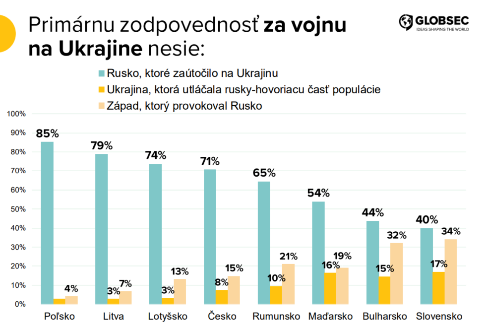 „Nie nami, ale Globsecom bolo zmerané, že veľká časť slovenskej verejnosti si myslí, že za vojnu na Ukrajine je zodpovedná samotná Ukrajina alebo USA. Tí ľudia majú nejaké názory,“ vysvetľoval Fico svoje postoje.