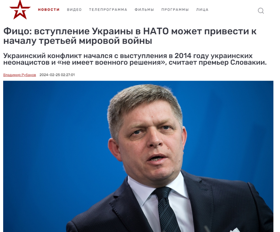 Ruskí propagandisti si počas februára všimli hneď niekoľko Ficových vystúpení. Okrem jeho komentovania parížskej schôdzky ako „bojovej porady“ citovali sobotné vyhlásenie na druhé výročie invázie a zaujal aj rozhovor, ktorý Fico pred necelými dvoma týždňami poskytol prokremeľskému webu Hlavné správy.