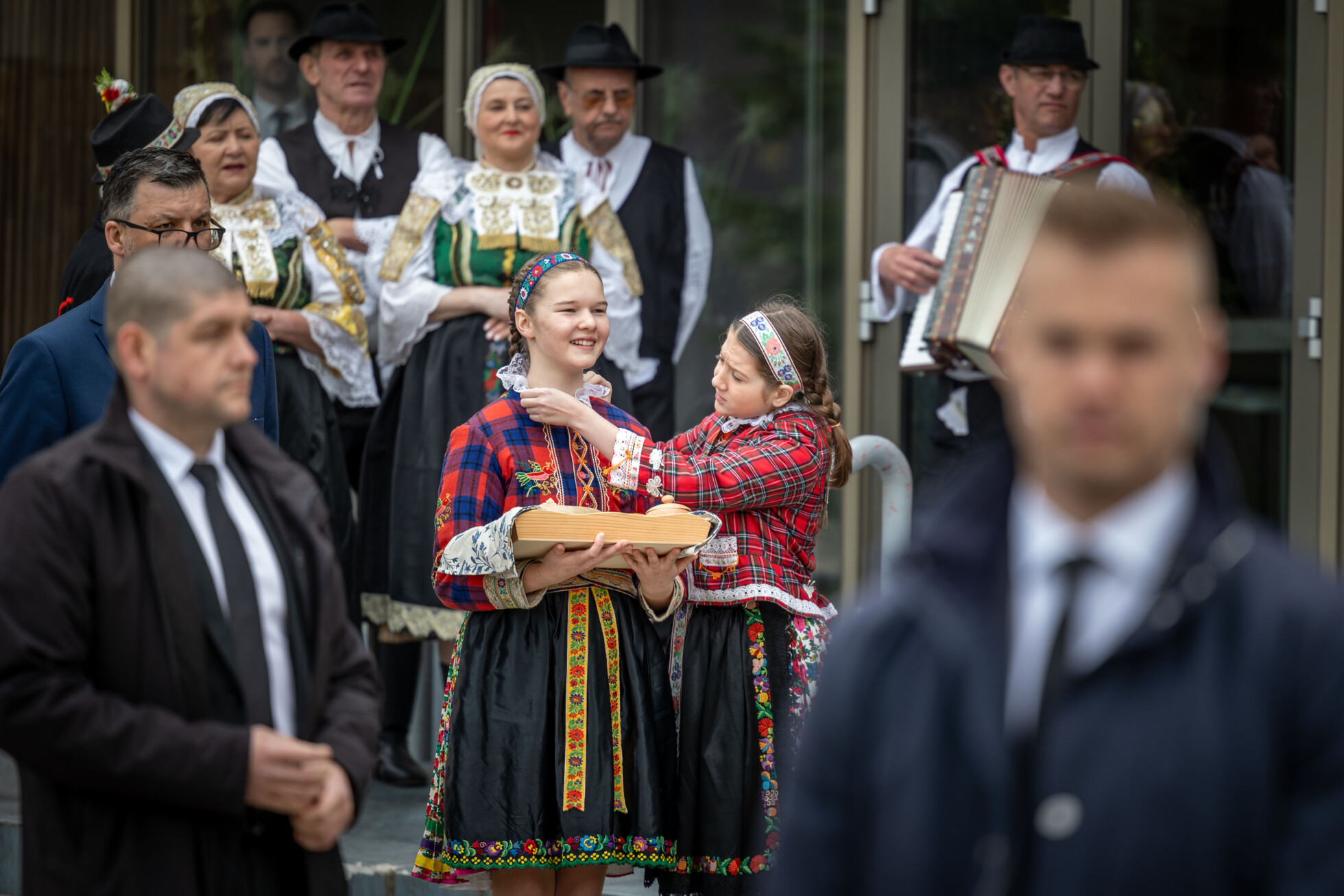 Vráťme sa na rokovanie vlády, ktoré bolo v Galante. Ministrov pred mestským kultúrnym strediskom vítali chlebom a soľou, za spevu ľudových piesní – folkloristi opakovane spievali Na Kráľovej holi, obľúbenú pieseň Smeru, ktorú jeho politici spievajú na svojich straníckych akciách a napríklad aj po vyhratých minuloročných parlamentných voľbách.
