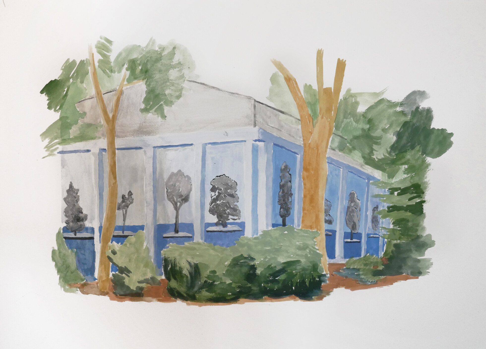 Oto Hudec spolu s kurátorkou už na začiatku rátali s tým, že budú môcť využiť fasádu pavilónu a urobiť na nej veľkoformátovú maľbu. Za iných okolností by to zrejme nešlo, ale súhra tých aktuálnych to umožňovala.