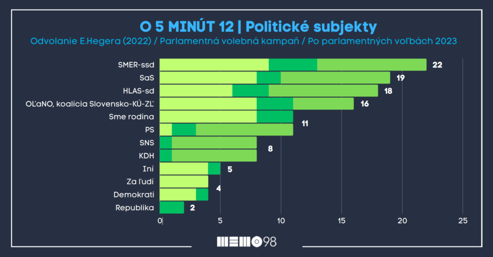 Viac informácií: Nezisková organizácia Memo 98 analyzovala televízne politické diskusie za ostatných 16 mesiacov, teda od pádu vlády Eduarda Hegera, počas volebnej kampane a aj obdobie novej vlády.