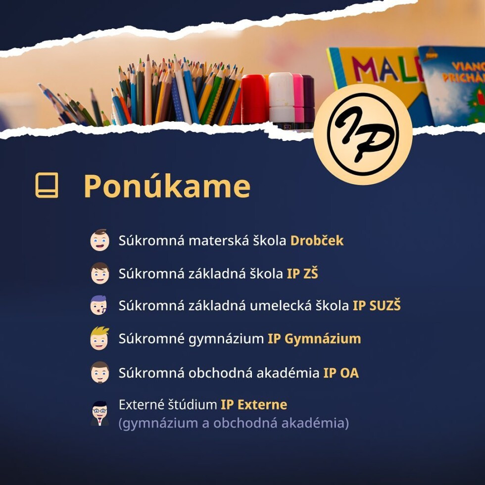 Má modernú webstránku, na ktorej píše, že je škola budúcnosti. Skratkou IP vysvetľujú svoje hodnoty: inšpiratívne prostredie, inovatívny prístup, individuálne potreby.