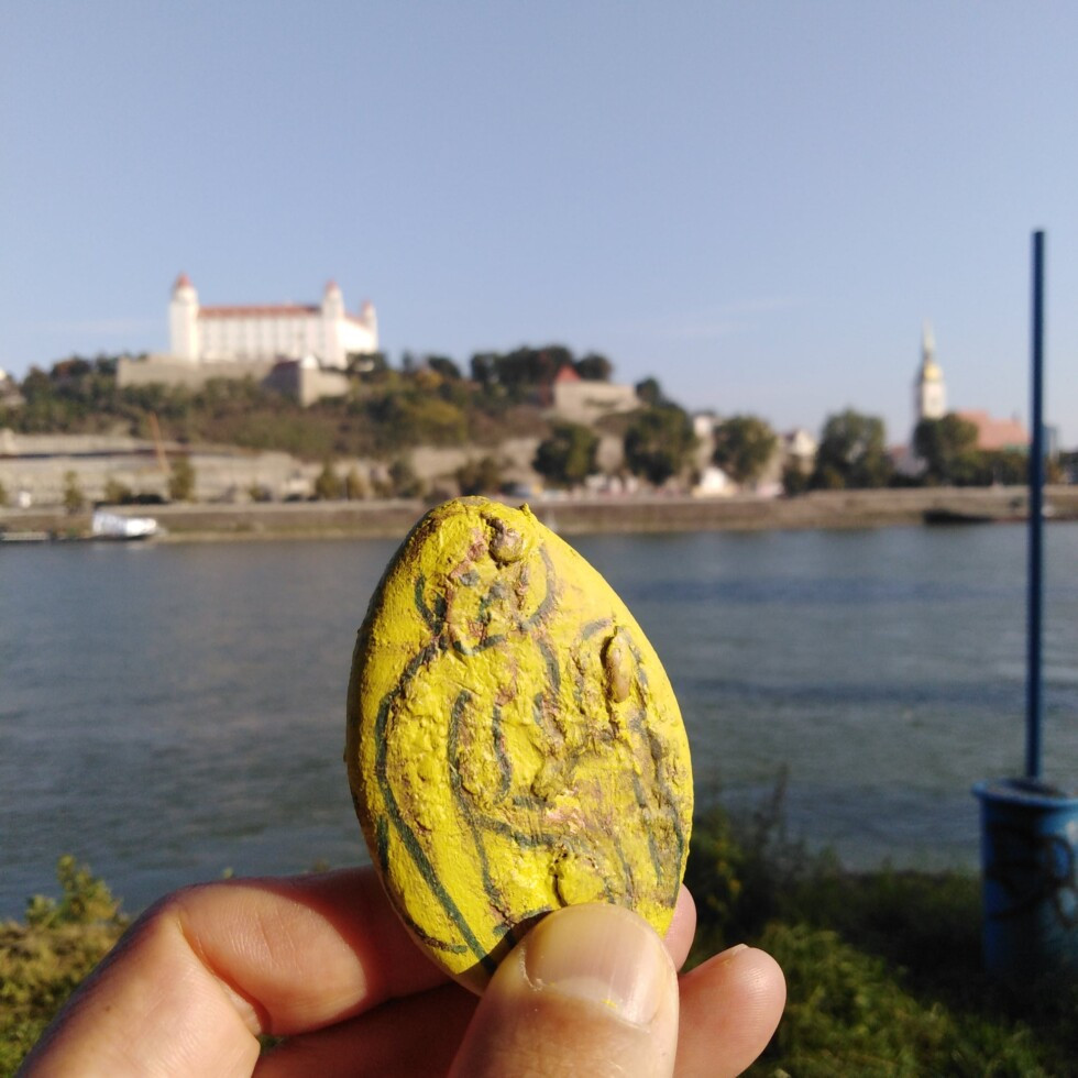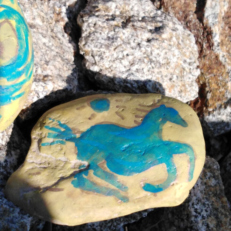 Natrie kamienok akrylovou farbou a potom buď jednoducho to tam načrtne, alebo sa s tým pohrá..Možno spraví viac kamienkov, vyvinie sa jeho tvorivý duch, cit, jemná kresba štetcom, fixom, farbou…a prinesie nám ako dar to najlepšie, čo budeme môcť dodať do mozaiky, ktorú sme začali tvoriť v jednom priestore bývalého detského ihriska, kde ostali nejaké múriky a pribudla obľúbená reštaurácia…