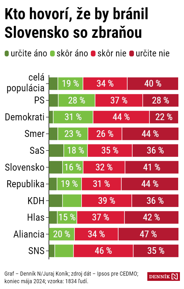 Ak by Slovensko napadli, brániť by ho šiel len každý štvrtý, ukazuje prieskum agentúry Ipsos pre CEDMO. Za vlasť by najmenej bojovali voliči SNS Andreja Danka.