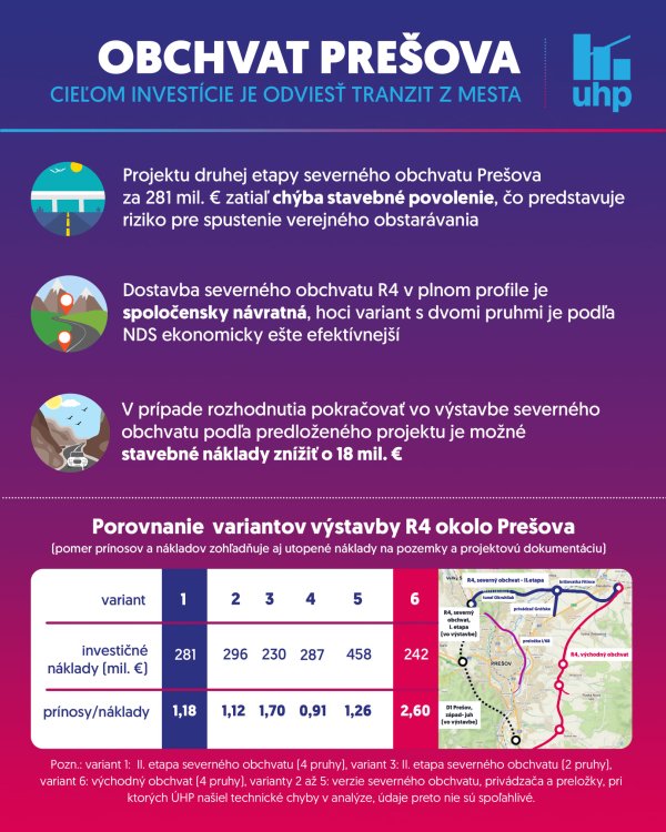 Výstavba 2. etapy severného obchvatu Prešova je ekonomicky návratná aj so 4 jazdnými pruhmi, ale v polovičnom profile vychádza ešte výhodnejšie, zhodnotili analytici Útvaru hodnoty za peniaze. Stavať sa má v rokoch 2022 až 2026.