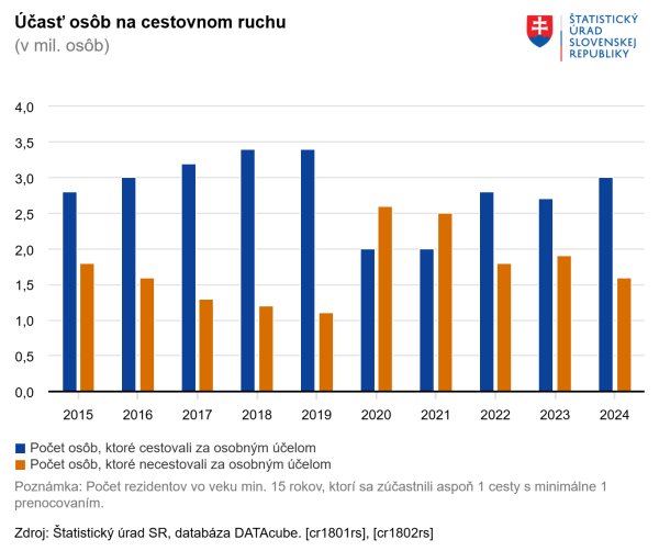 Obyvatelia Slovenska stále nedovolenkujú toľko ako pred covidom, ukazujú vlaňajšie dáta štatistického úradu. Po Slovensku ani do zahraničia necestovalo minulý rok 1,6 milióna ľudí, v roku 2019 to bolo 1,1 milióna.