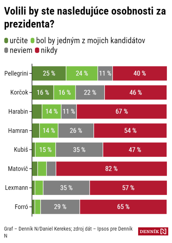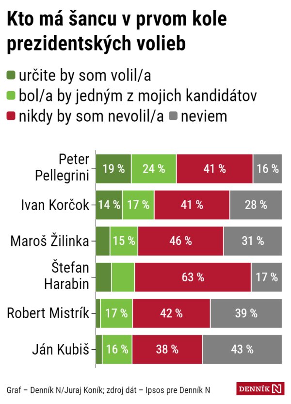 Ipsos: Súboj medzi Pellegrinim a Korčokom je tesný, druhé kolo môžu rozhodnúť Harabinovi voliči (+ kde berú kandidáti podporu)